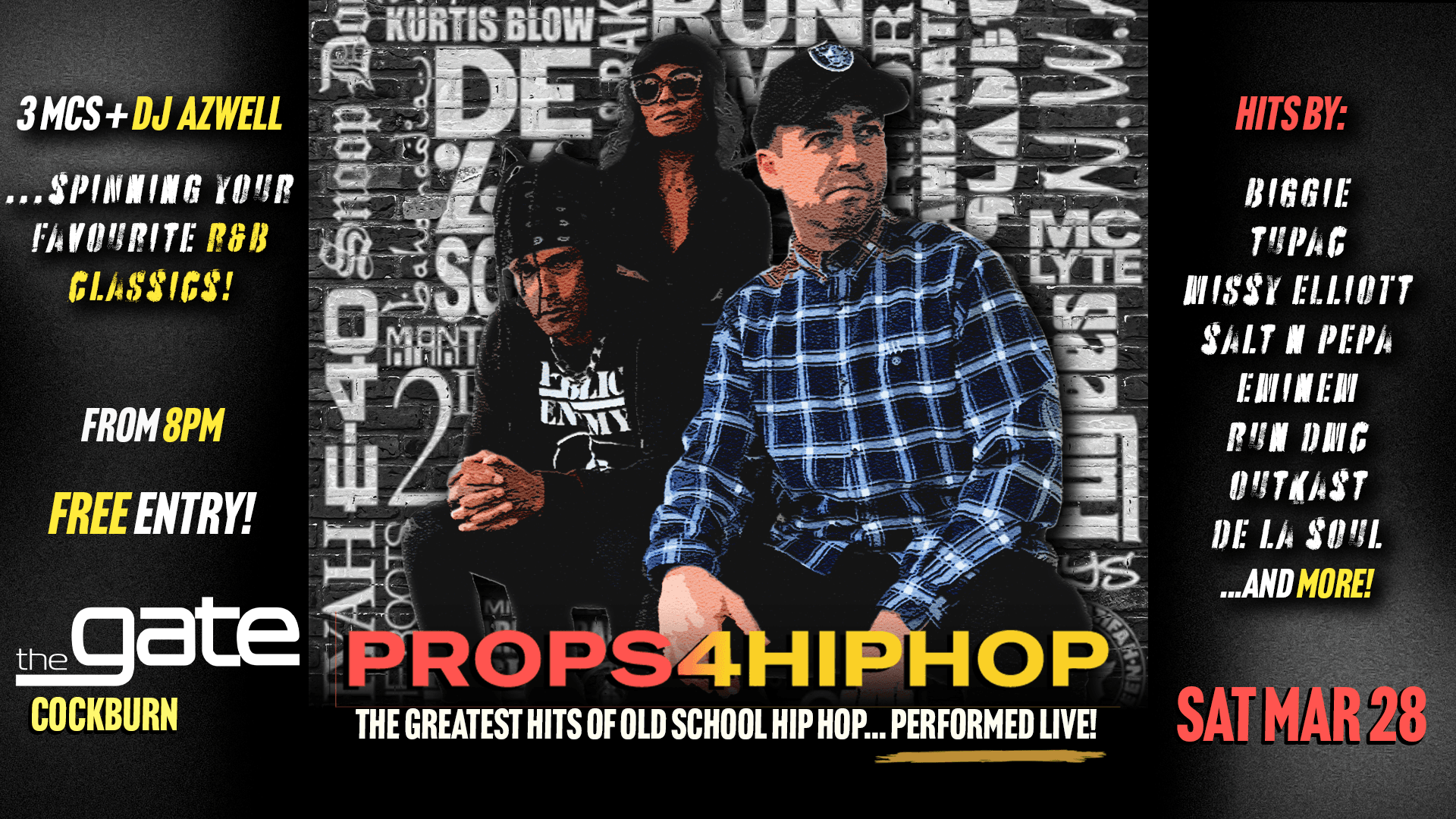 Australia’s only authentic LIVE tribute to the greatest hits of the old skool: PROPS 4 HIP HOP are back at the Gate! Saturday 28th March - it’s time to get...