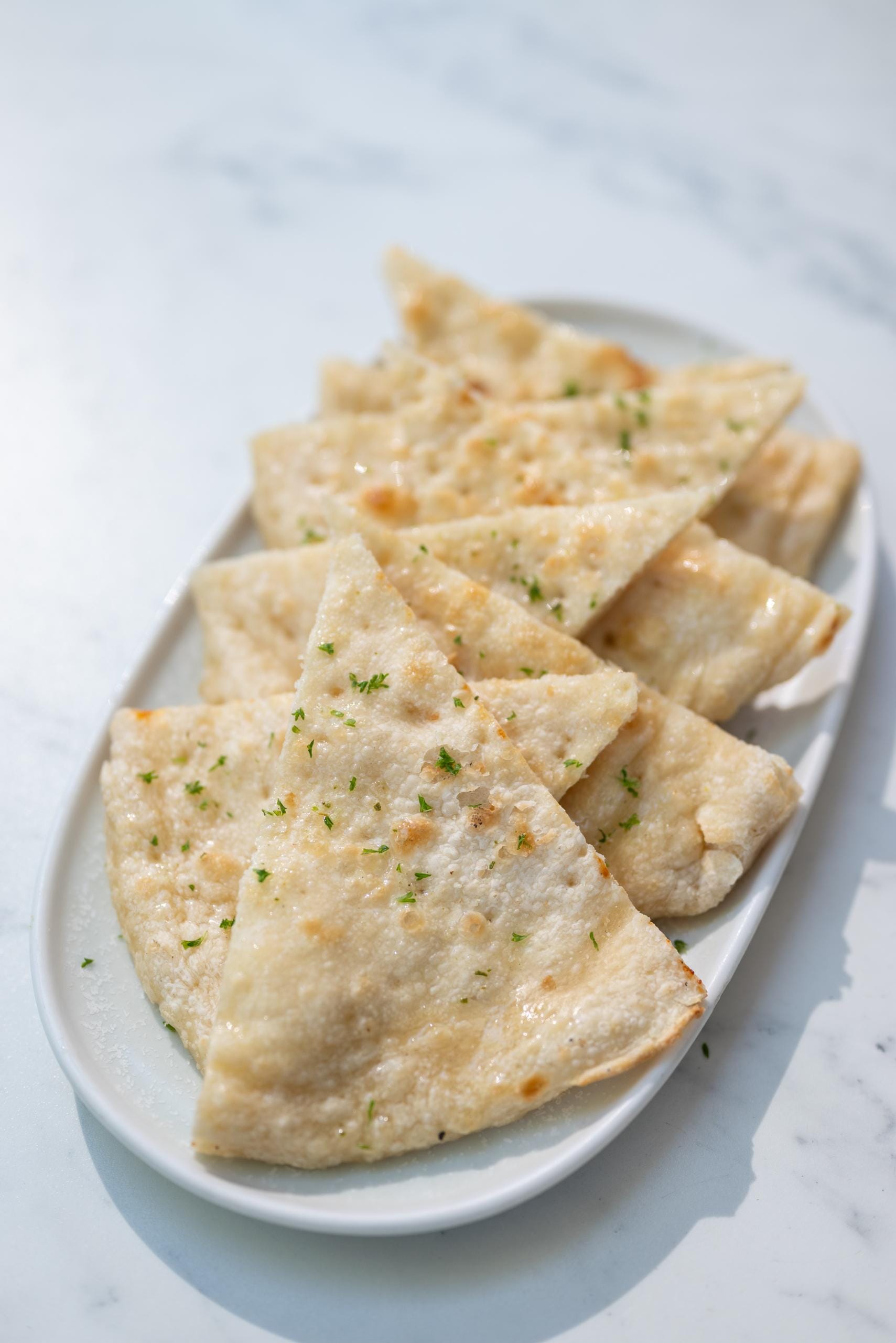 Hand stretched pizza base, garlic oil & rosemary sea salt