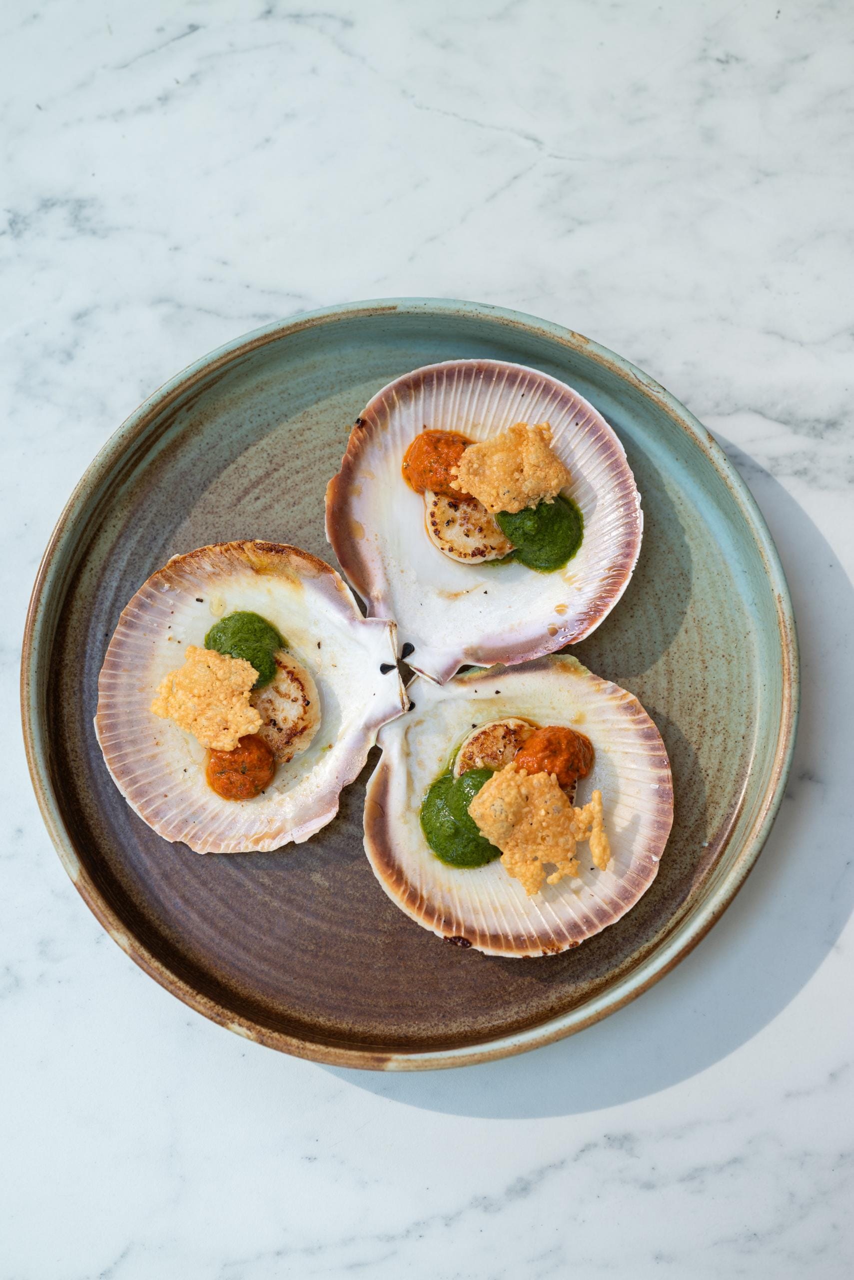Jumbo Shark Bay scallops, red chimichurri, green sauce