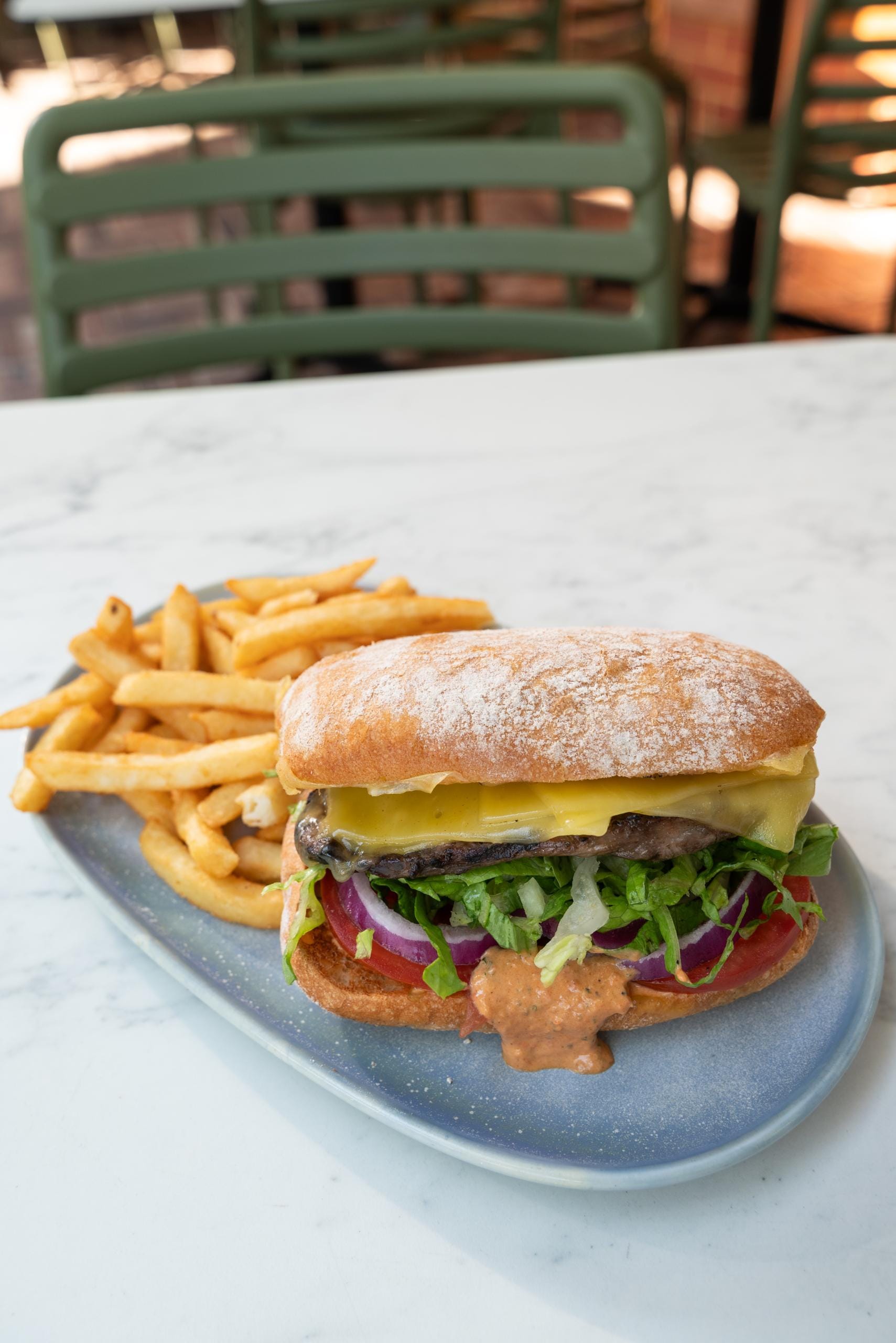 cos lettuce, The Gate’s burger sauce, Martin’s potato roll & chips